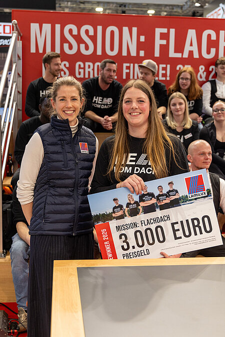Ein Höhepunkt der DACH+HOLZ 2026 ist die MISSION: FLACHDACH 2.0. Am 25. und 26. Februar findet das große Finale direkt an unserem Messestand statt. Hier zeigen die besten Talente des Dachdeckerhandwerks live ihr Können, wenn sie Abdichtungen wie auf der Baustelle meistern. Die Fachjury kürt die drei Sieger, die sich über je 3.000 Euro Unterstützung für ihre Meisterausbildung freuen dürfen.