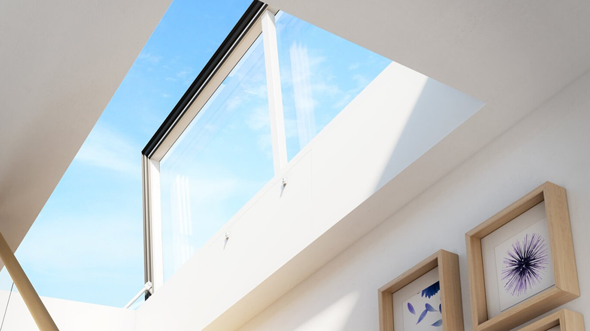 Optisch wirkt der Einfassrahmen im Look einer Metalloberfläche prägnant und zieht die Blicke als architektonisches Highlight auf sich. Die Aluminiumprofile und Leibungsfläche sind in allen RAL-Farben lackierbar. Da Scheiben und Rahmen planeben zusammengefügt sind und das Element fünf Grad geneigt ist, entsteht auf dem geschlossenen Oberlicht ein stufenloser Wasserablauf. Es reinigt sich somit selbst vom größten Schmutz und bringt so zuverlässig eine große Menge an Tageslicht ins Dachgeschoss.