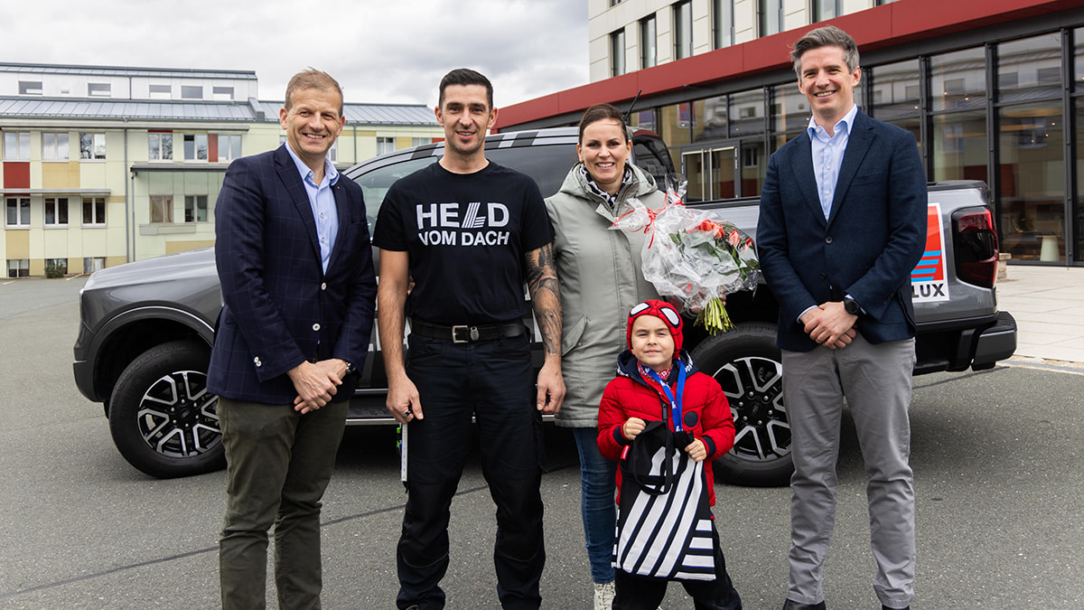 Heute ist ein besonderer Tag für Dachdeckermeister Ronny Schulz, den strahlenden Gewinner des bundesweiten Dachdecker-Wettbewerbs "MISSION: FLACHDACH" von LAMILUX. Nach intensiven Qualifikations- und Finalrunden wurde am heutigen Donnerstag der Schlüssel zum begehrten Preis, einem Ford Ranger für ein Jahr, an den herausragenden Gewinner überreicht.