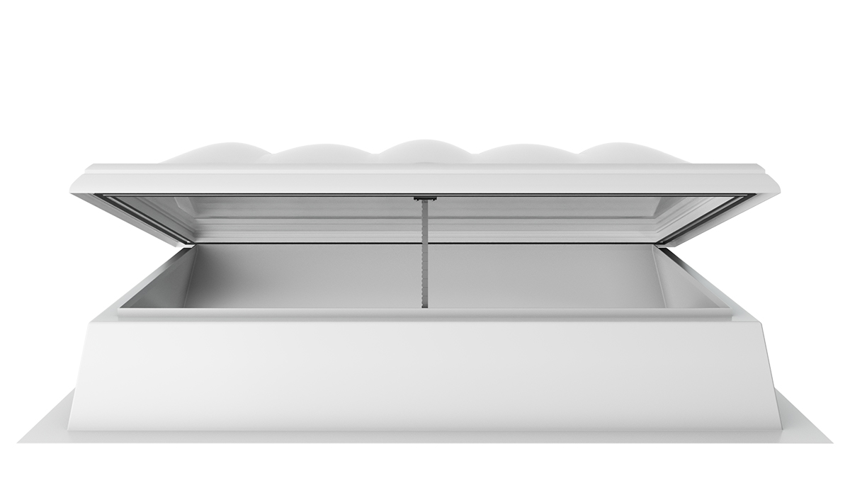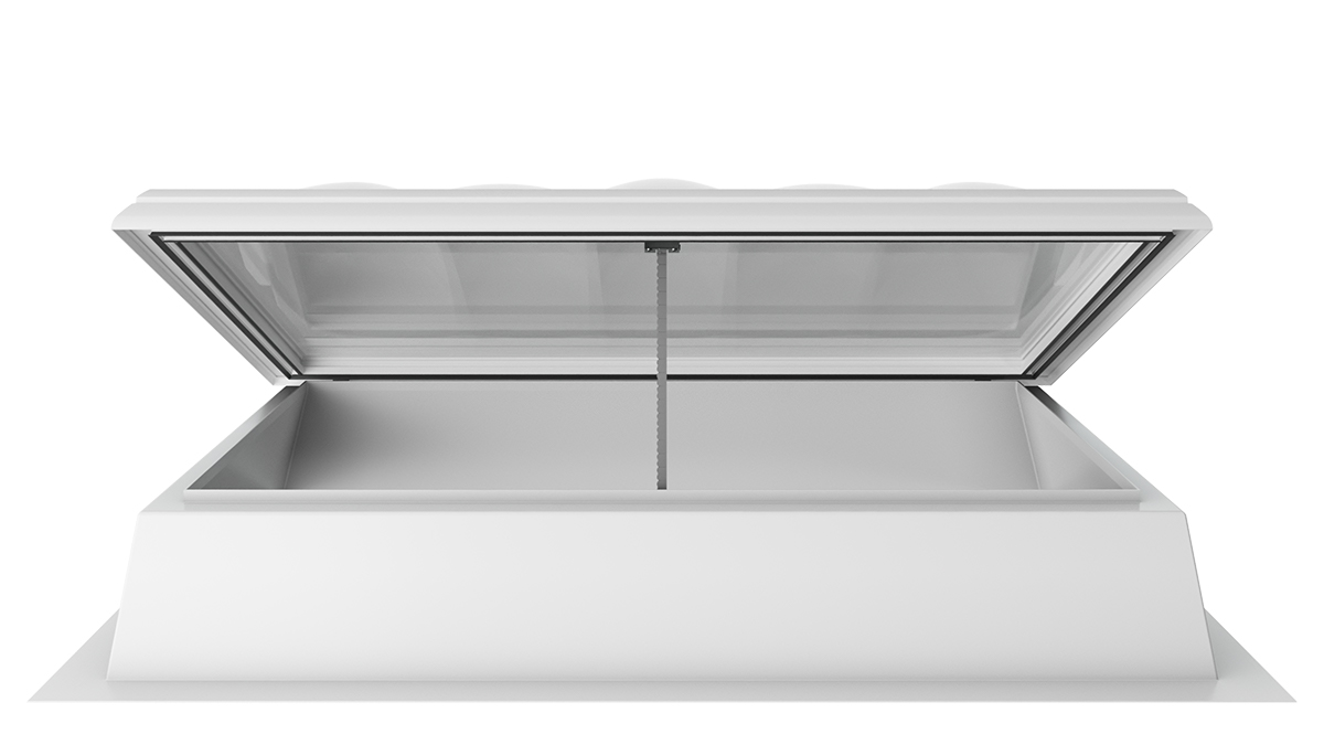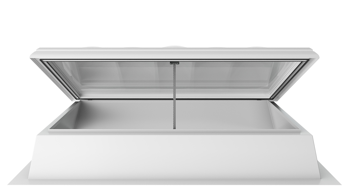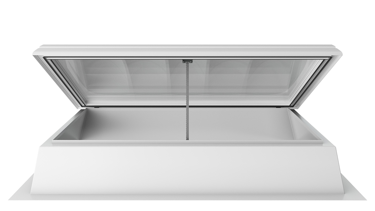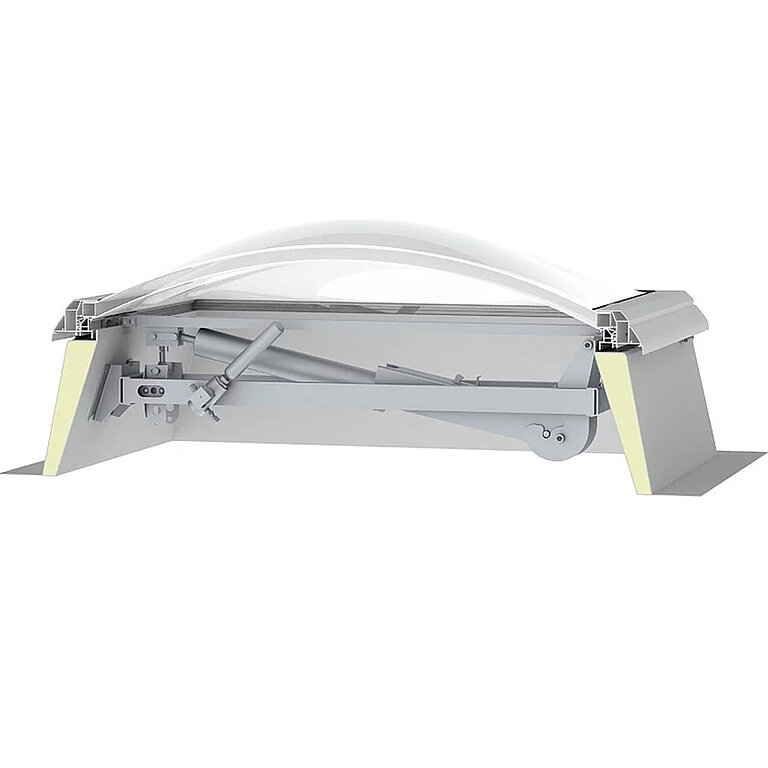 Die Lichtkuppel F100 W mit Rauchlift lässt sich nahtlos in bestehende Brandschutzkonzepte integrieren. Sie kombiniert die Funktionen und Vorteile eines Oberlichts mit intelligenter Steuerung und wird so zu einem zuverlässigen Rauch- und Wärmeabzugsgerät.