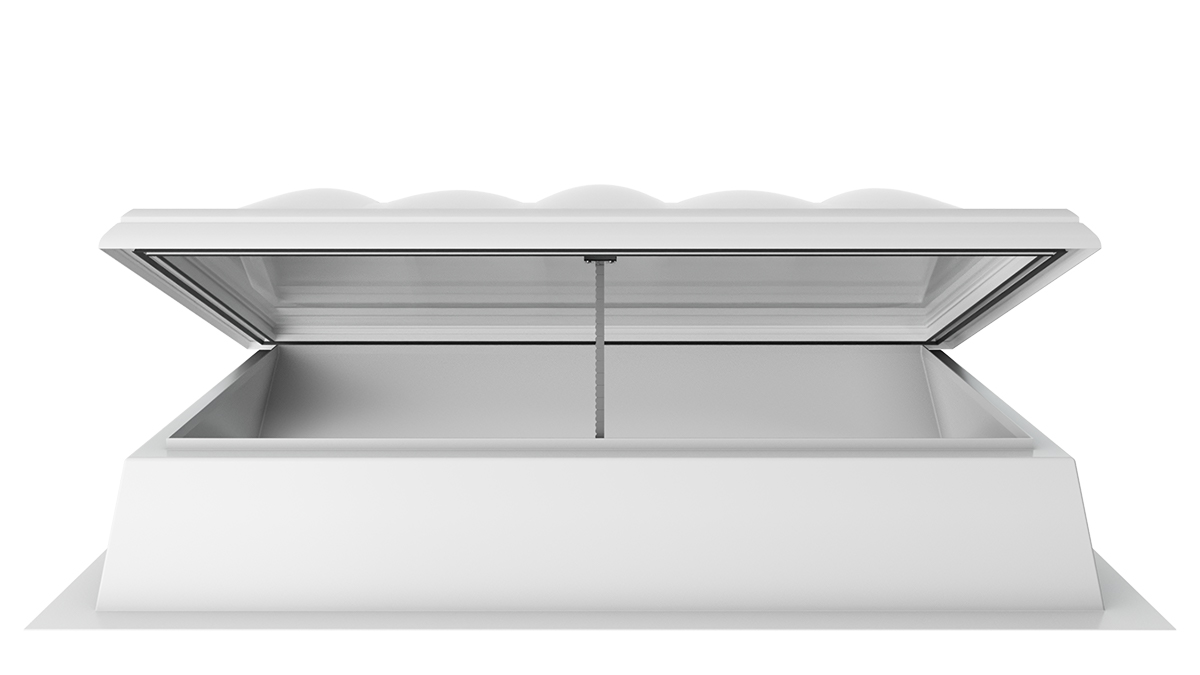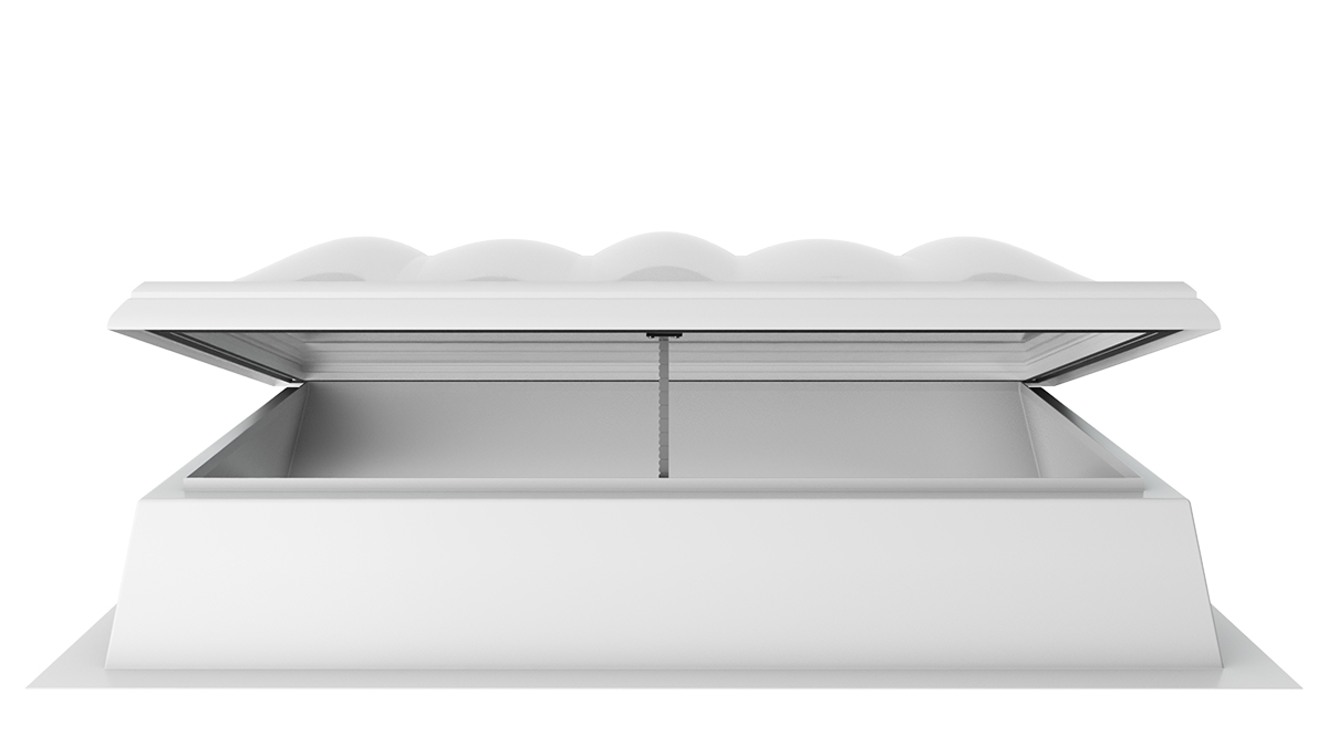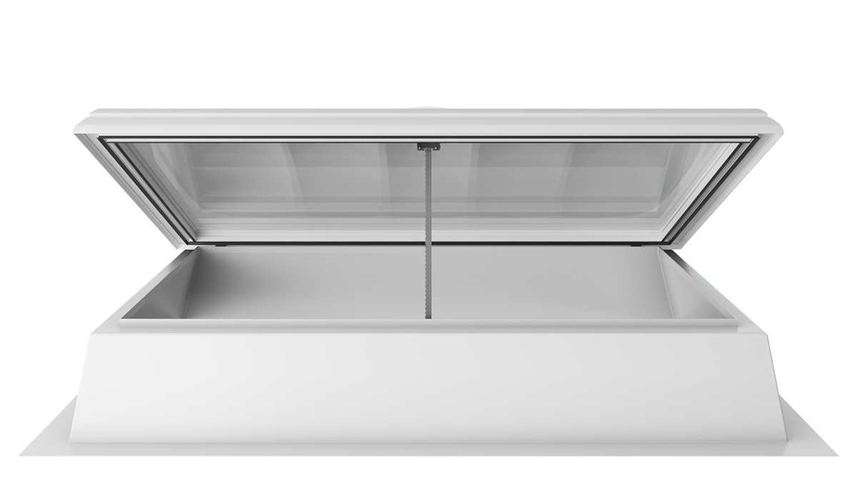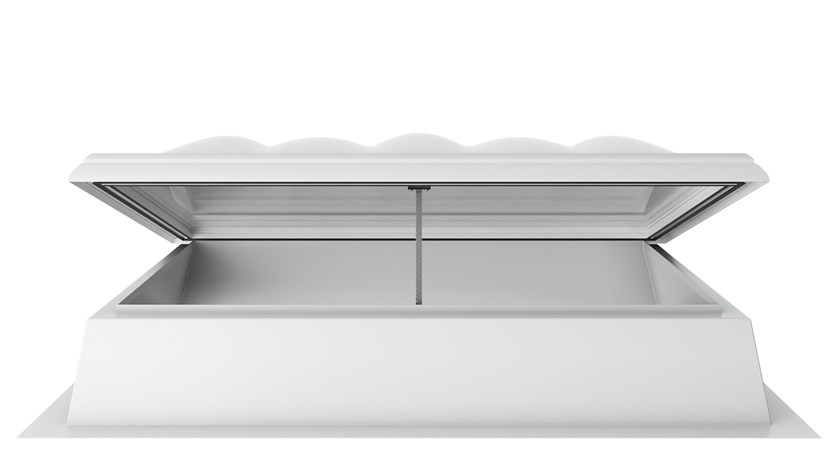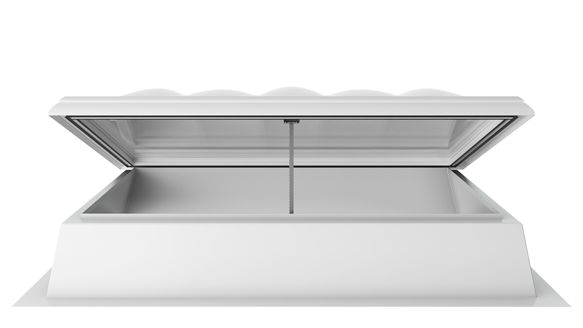 Die Lichtkuppel F100 W mit Rauchlift lässt sich nahtlos in bestehende Brandschutzkonzepte integrieren. Sie kombiniert die Funktionen und Vorteile eines Oberlichts mit intelligenter Steuerung und wird so zu einem zuverlässigen Rauch- und Wärmeabzugsgerät.