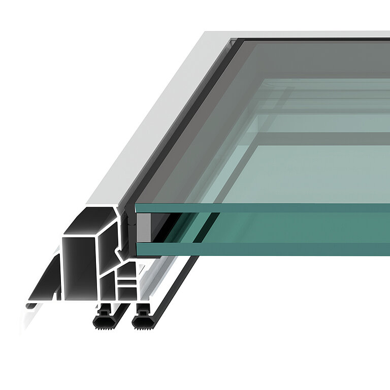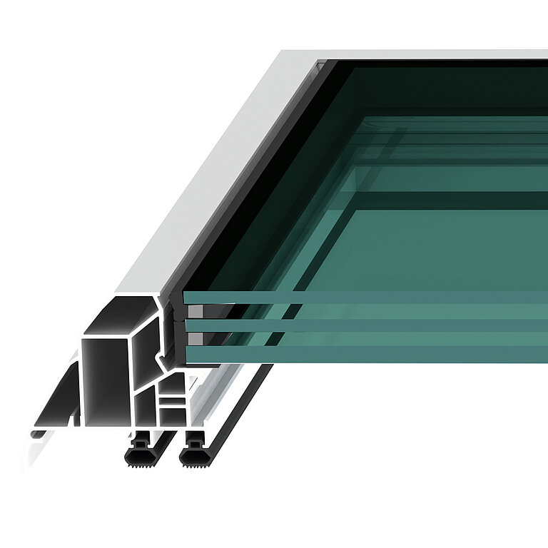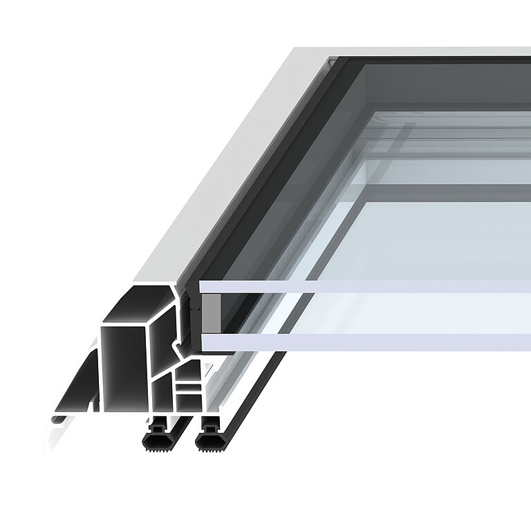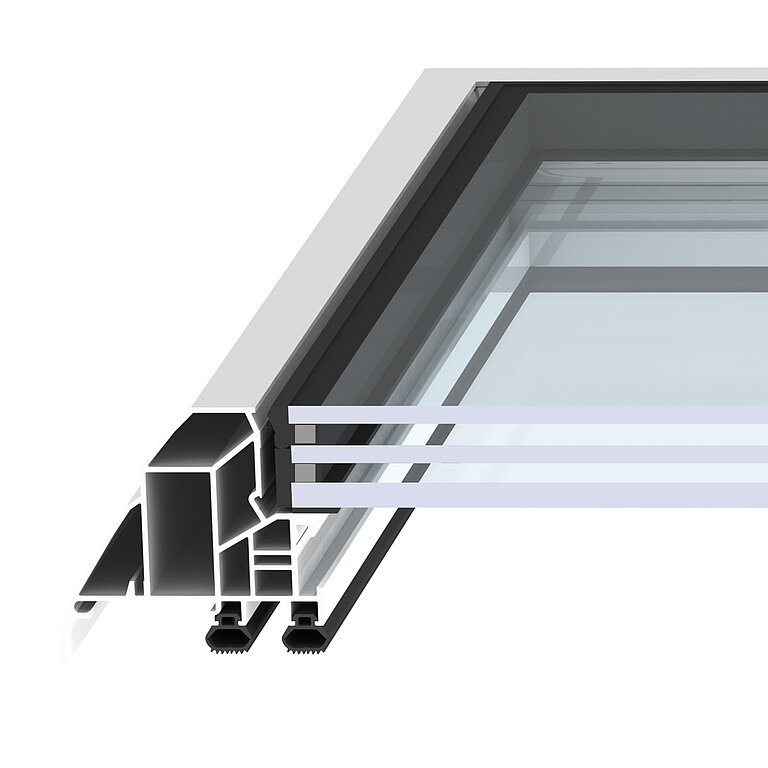 Der Sonnenschutz ist wahlweise innenliegend mit Sicherheitszugbändern, außenliegend als Rollo oder als starre Variante mit Laubbaumeffekt erhältlich. Optional ist auch eine Ausführung mit integriertem Solarmodul möglich.