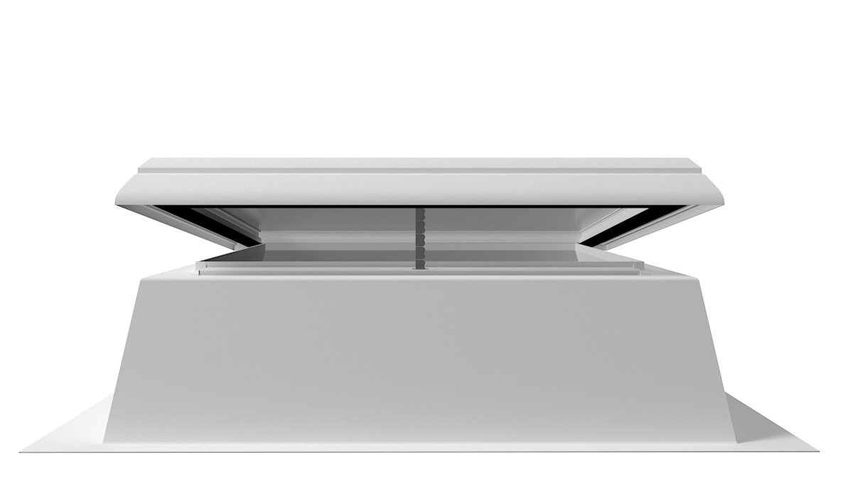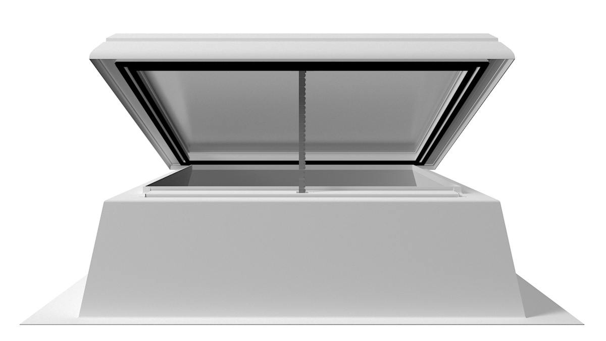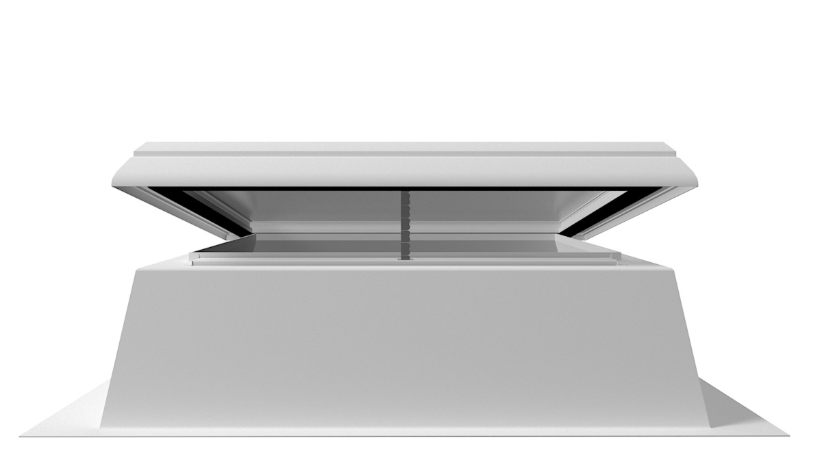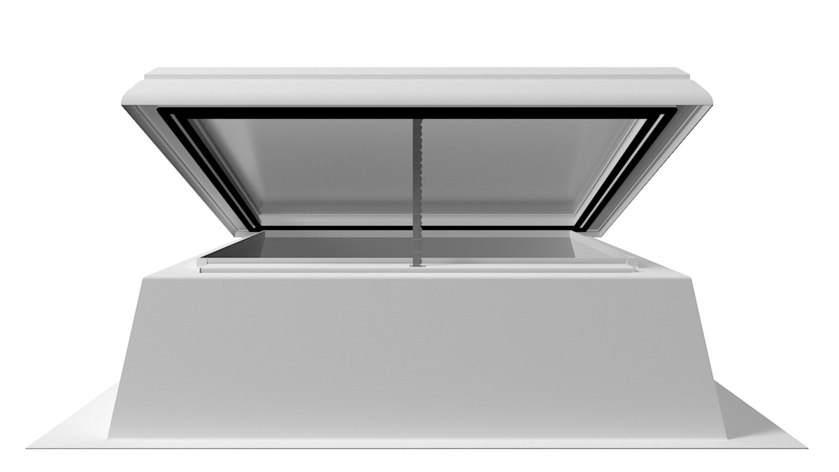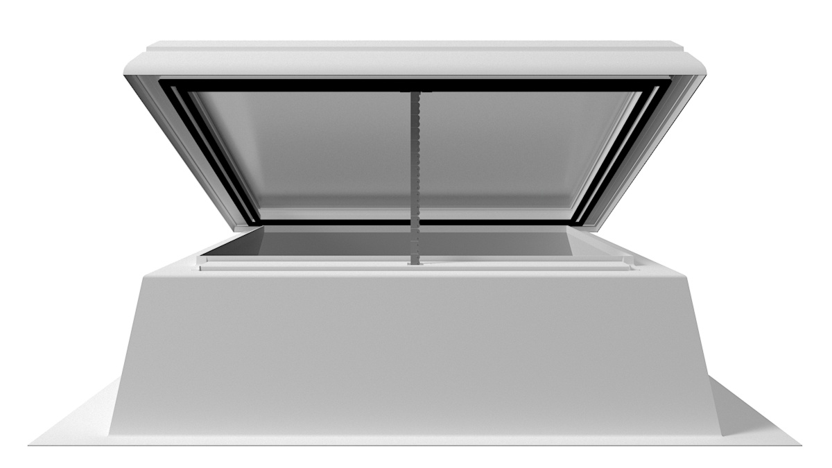 Die Öffnung erfolgt einfach und kraftunterstützt über Gasdruckfedern – geeignet für 2-Scheiben-Verglasungen bis 120 x 120 cm und 3-Scheiben-Verglasungen bis 100 x 100 cm.