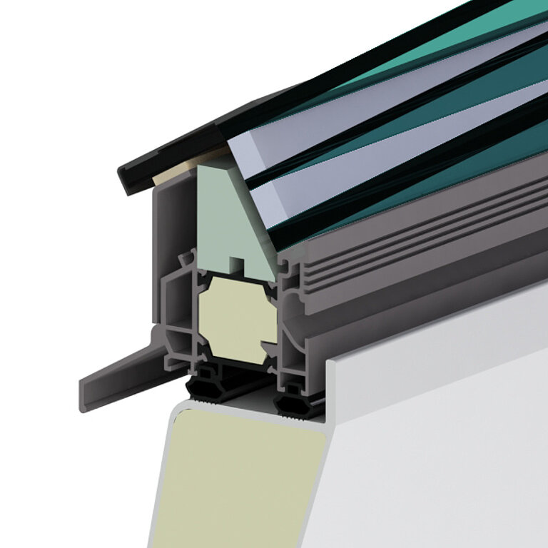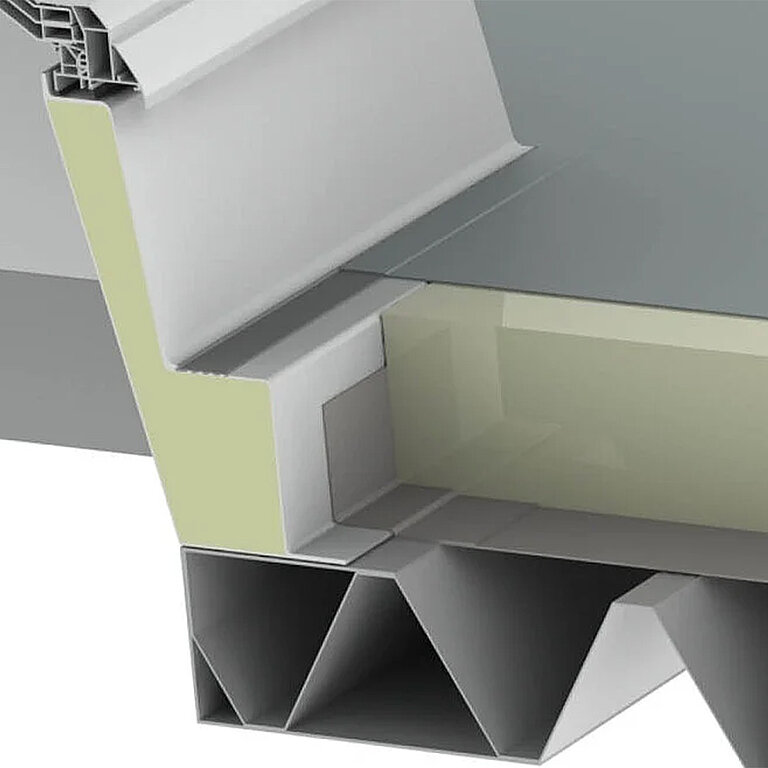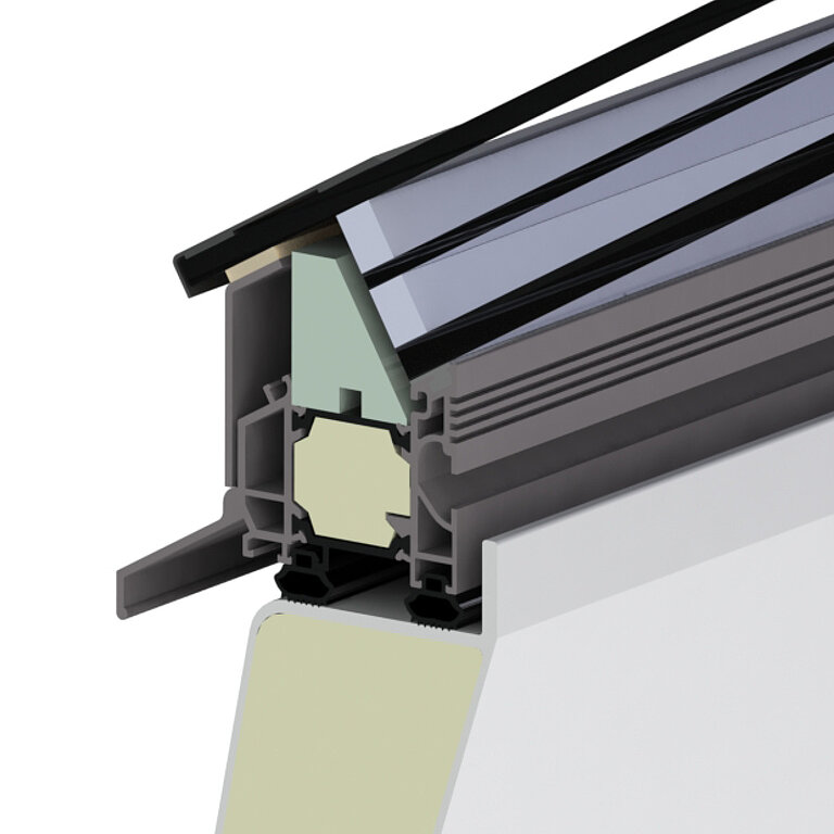 Das LAMILUX Flachdach Fenster FE Pyramide / Walm überzeugt nicht nur durch seine markante Geometrie, sondern auch durch innere Werte: Eine patentierte Strukturrippung im Aluminiumrahmen nutzt gezielt die Wärme der Raumluft und sorgt für einen erhöhten Temperaturverlauf entlang des Rahmens. Das Ergebnis ist ein knickfreier Verlauf der sogenannten Isothermen – Temperaturlinien, die in der Bauphysik messbar machen, wo Wärme bleibt und wo sie verloren geht. Beim FP / FW bleibt die kritische 10 °C-Isotherme sicher innerhalb der Konstruktion. Das sorgt für maximale Energieeffizienz und deutlich reduzierte Kondensat-Gefahr.