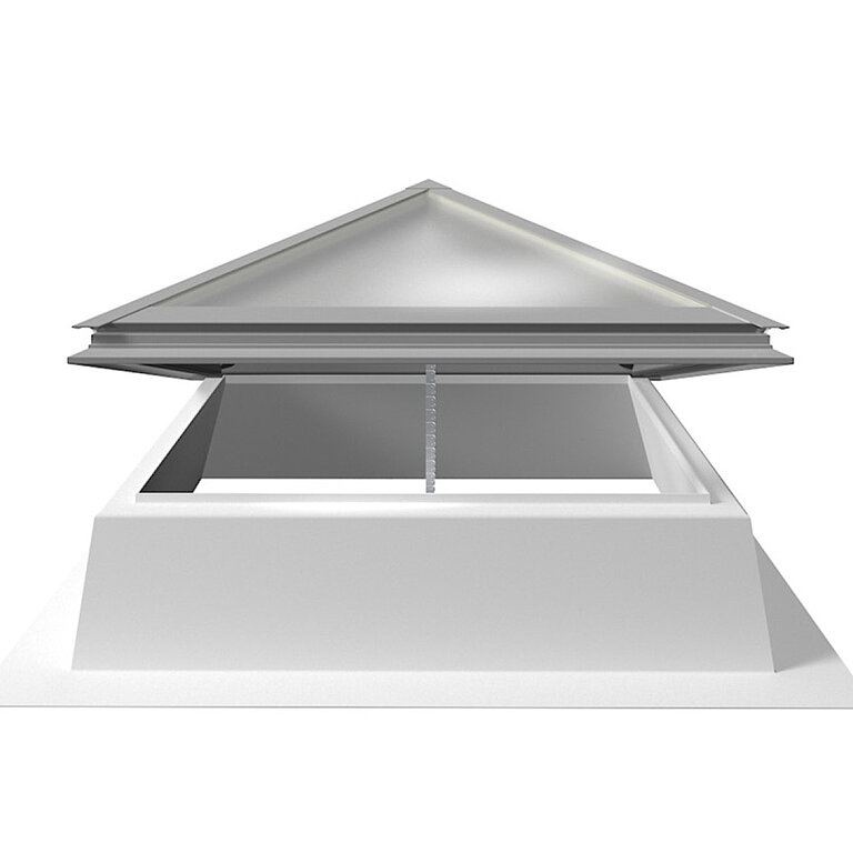 Die manuelle Öffnung erfolgt über eine Gasdruckfeder und ist bei 30° Neigung für 2-Scheiben-Verglasungen bis 100 × 100 cm sowie für 3-Scheiben-Verglasungen bis 90 × 90 cm geeignet.