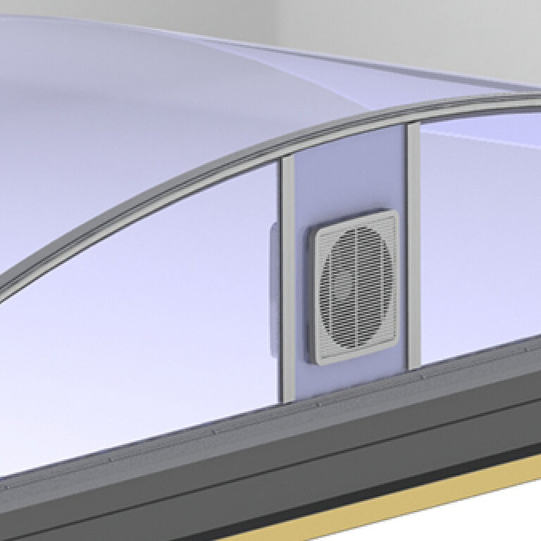 Alle Ventilatoren verfügen über eine elektrische Verschlussklappe; der Einbau richtet sich nach Lichtbandbreite, Einbaulage und Neigung des Firstreiters