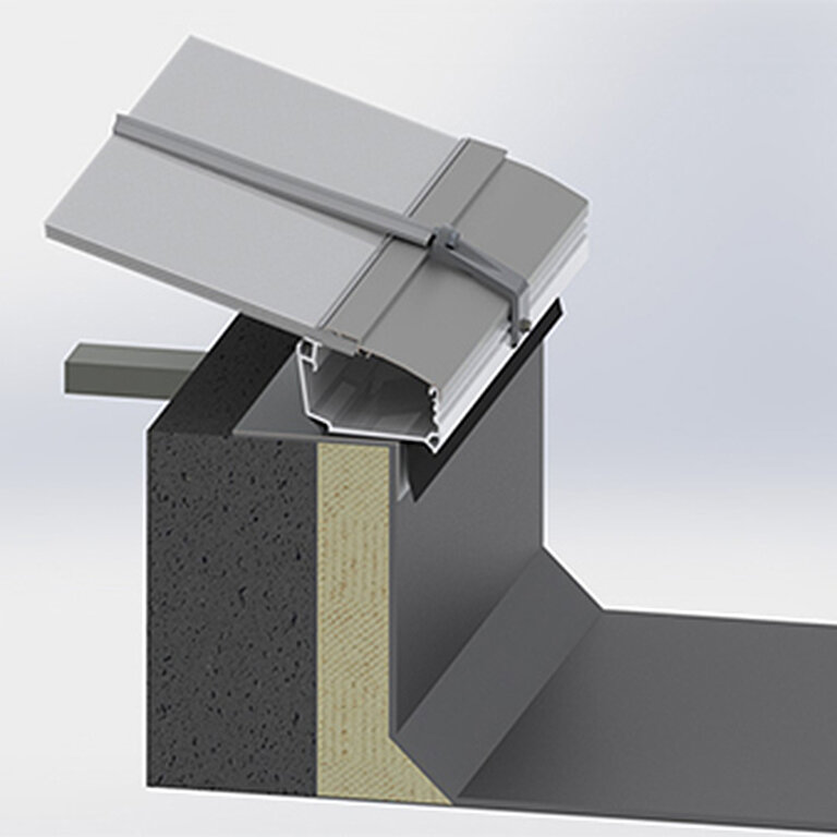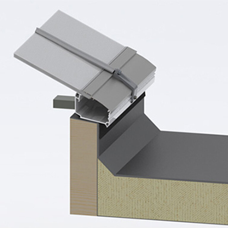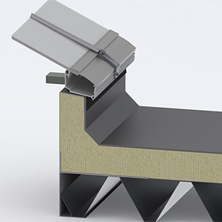 - Die Deckleisten verfügen über integrierte Führungsschienen zur Aufnahme von Beschlägen, Sonnenschutzeinrichtungen und Wartungsvorrichten.