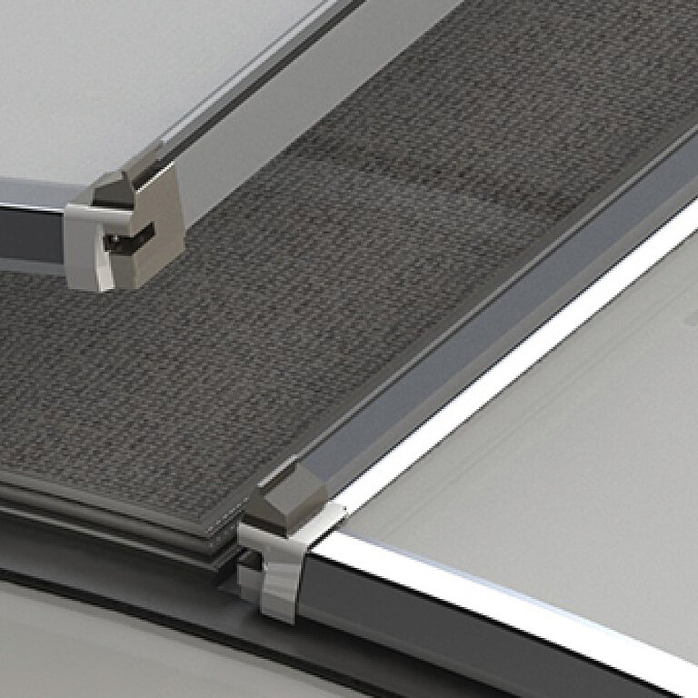 Wirkung: Der Aktive Dehnungsabsorber gleicht die bei Belastungen entstehenden Spannungen und Dehnungen aus. Dazu werden die Dichtungen durchlaufend schubfest mit den Deckleisten verbunden.