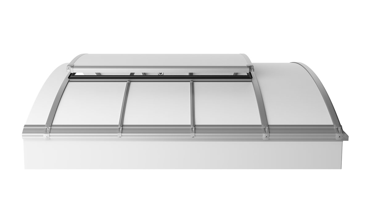 Rauchdicht und nicht brennbar (A1), besteht aus einem Aufbau mit 2 mm Alu / PC 10 / 2 mm Alu und dient der Unterteilung von Rauchabschnitten, indem das PC der Lichtbandverglasung ausschmilzt und die Abschottung den Bereich weiterhin begrenzt