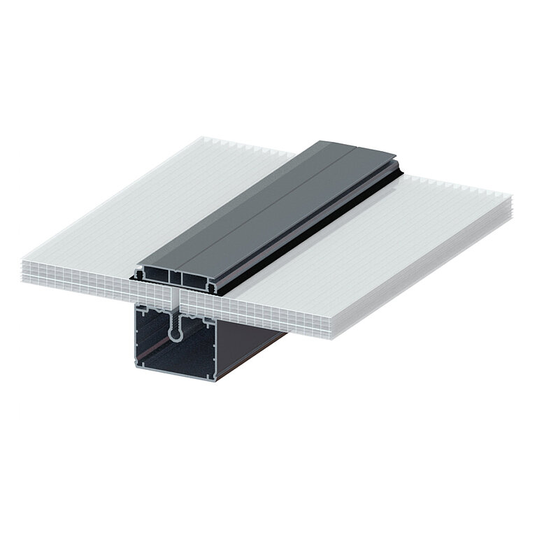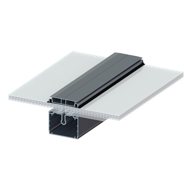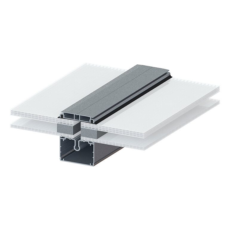 Nutzen: Bei vertikal und horizontal wirkenden Druck- und Spannbelastungen wird sowohl ein zu starkes Auseinanderdriften als auch Zusammenschieben der Bauteile verhindert, sodass sie innerhalb definierter Bewegungs- und Verschiebungstoleranzen verbunden bleiben. Auch bei starken Wind- und Schneelasten bleibt das Lichtbandsystem verwindungsstabil und somit dicht und sicher.