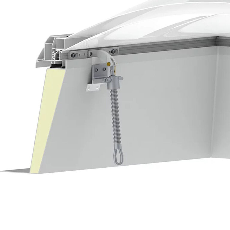 Die Lichtkuppel F100 W ist nicht nur ein zuverlässiges Tageslichtelement, sondern lässt sich auch als zertifiziertes Rauch- und Wärmeabzugsgerät (RWG) einsetzen. Im Brandfall öffnet sich die Kuppel automatisch und leitet Rauch sowie Hitze schnell nach außen. Das sichert Flucht- und Rettungswege, erleichtert die Brandbekämpfung und schützt Leben.