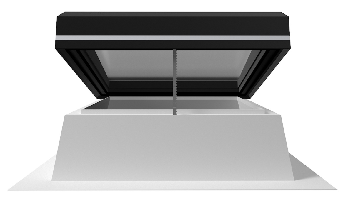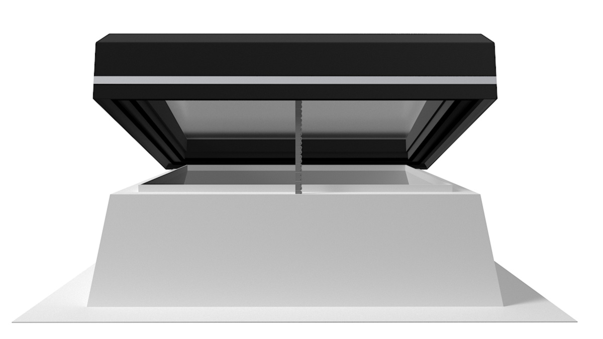 Optional für alle Größen als elektrisch betriebener, innenliegender Blendschutz, der an den Innenseiten des Aufsatzkranzes befestigt wird